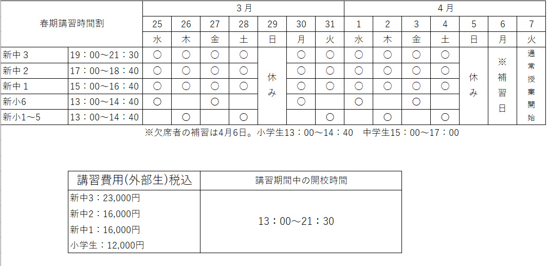 特に、新中3生の定期テストは内申点を決める重要なテストですので、講習中にテスト範囲を完璧に習熟させるつもりで臨みます。